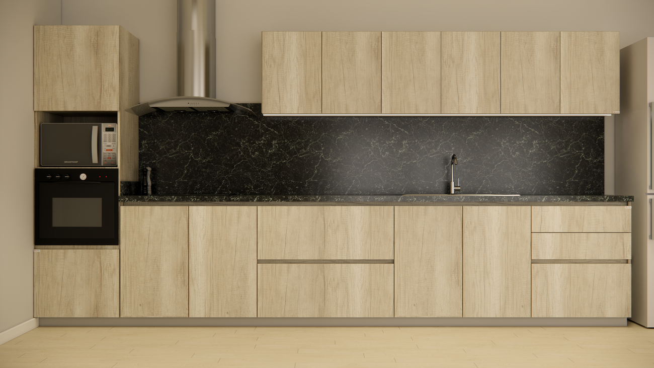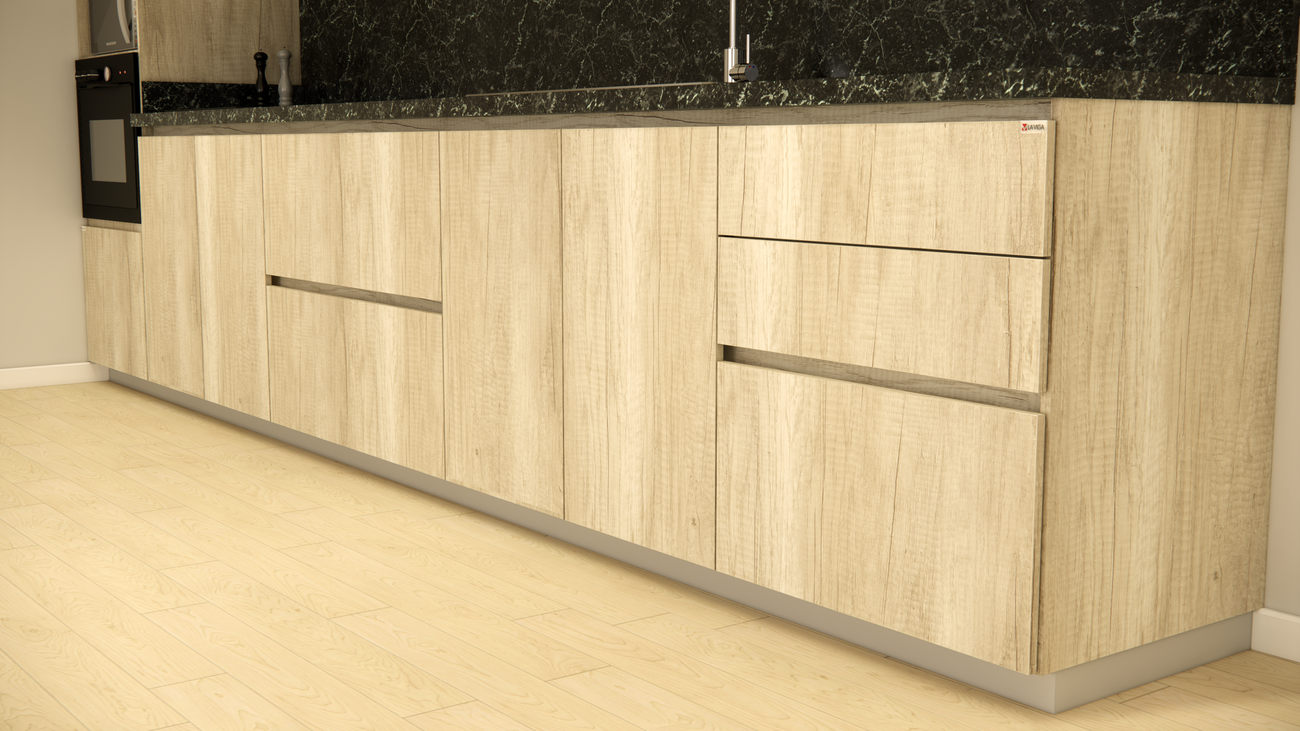 La Línea Duplo combina diseño contemporáneo y practicidad, ideal para quienes buscan una cocina moderna con líneas puras. Su sistema sin manijas (gola melamínica) aporta una estética limpia y uniforme, creando espacios visualmente amplios y elegantes.